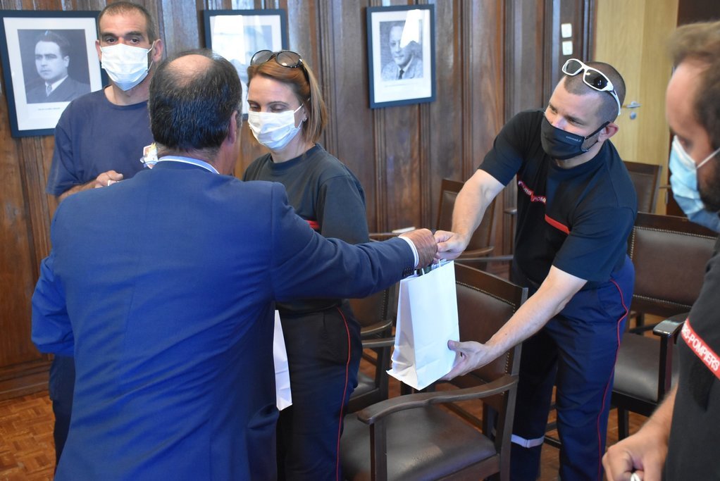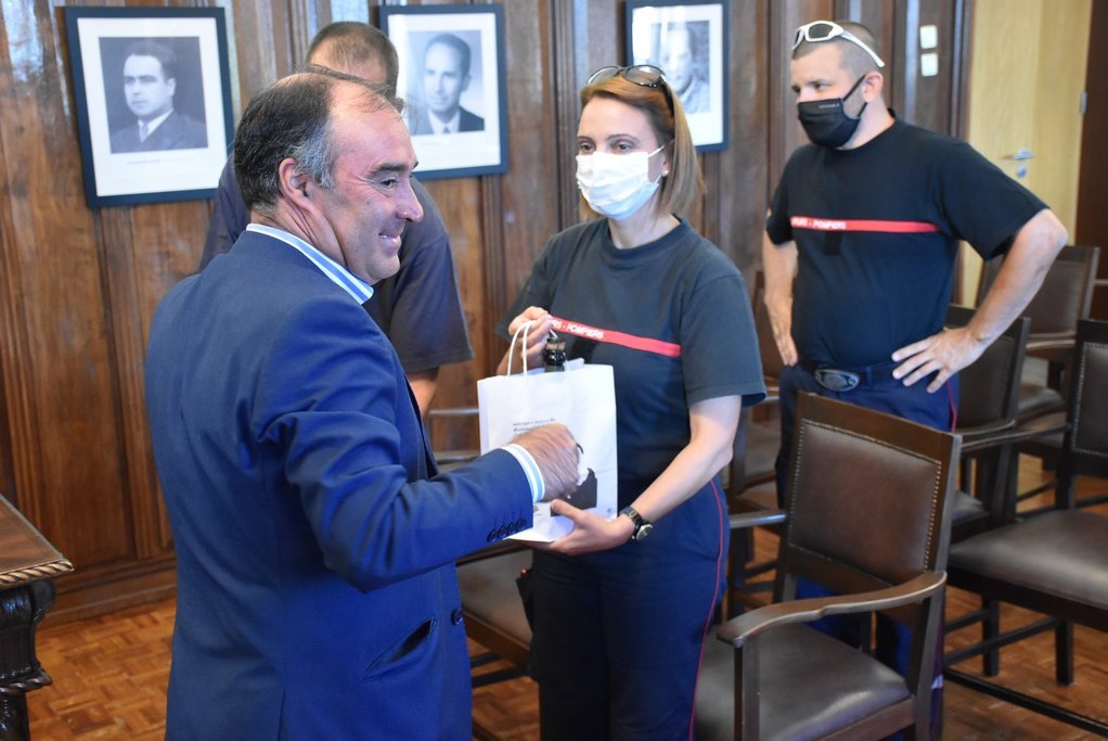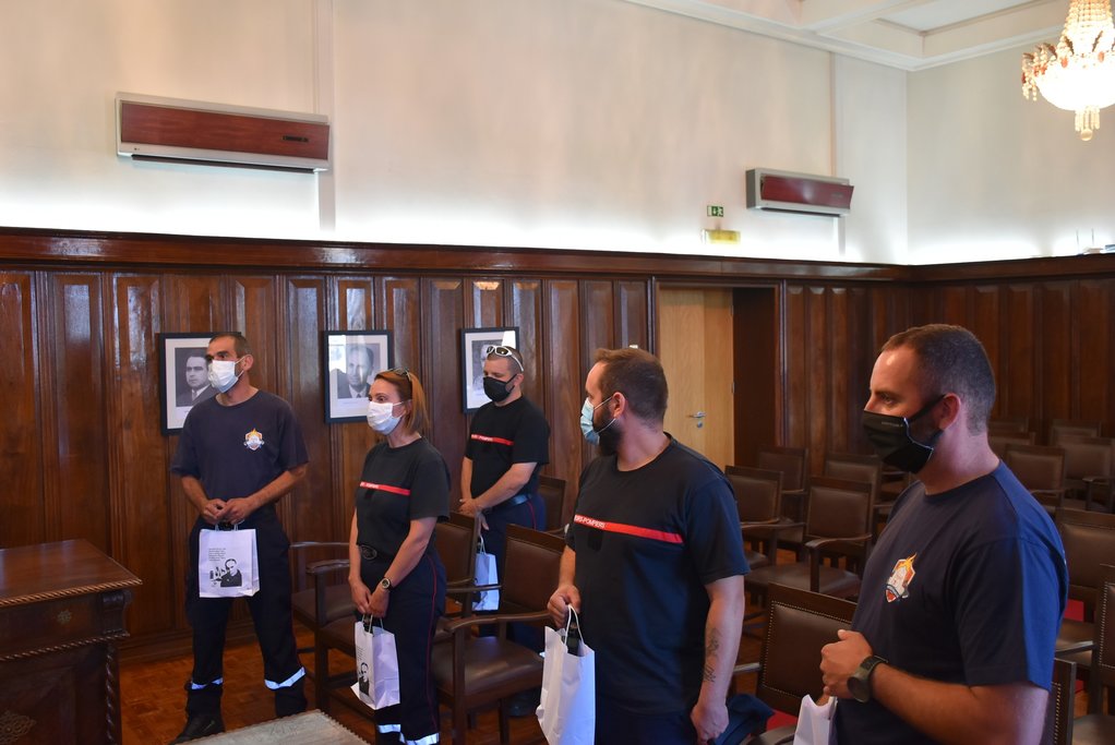 Esta sexta-feira, 14 de agosto, ao final da manhã, os cinco bombeiros, acompanhados pelo Comandante da Corporação de Voluntários, José Alberto Requeijo, foram recebidos pelo Presidente da Câmara Municipal de Moimenta da Beira, José Eduardo Ferreira, em audiência que teve lugar no Salão Nobre dos Paços de Concelho.