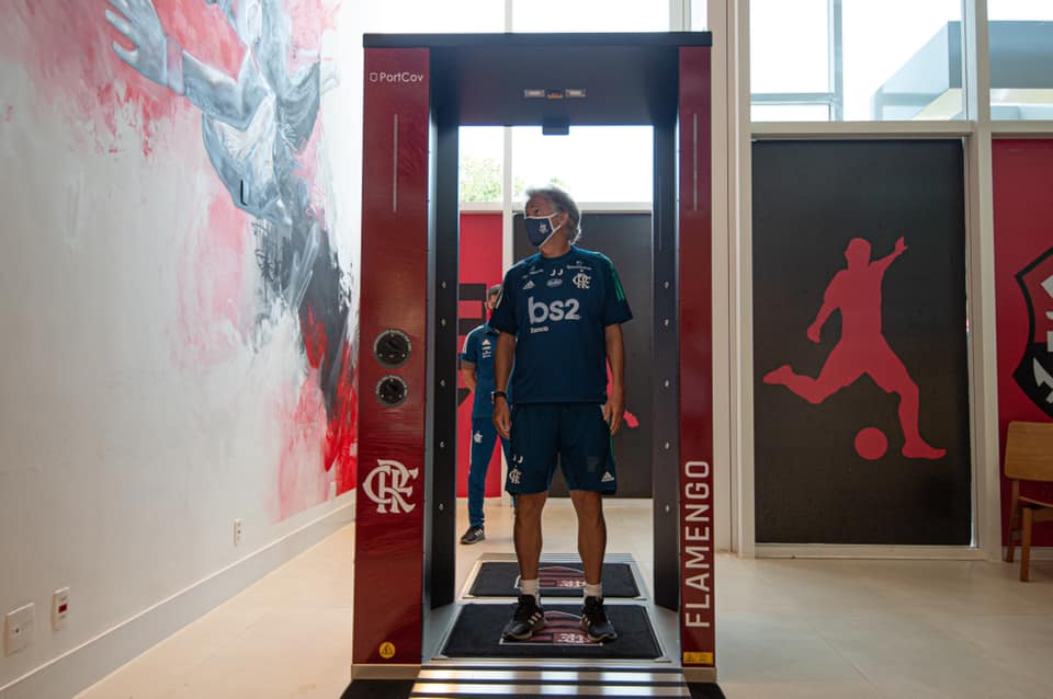 O clube português, treinado por Jorge Jesus, importou a PortCov para medir a temperatura corporal e controlar o número de pessoas que acessam o Ninho do Urubu diariamente.